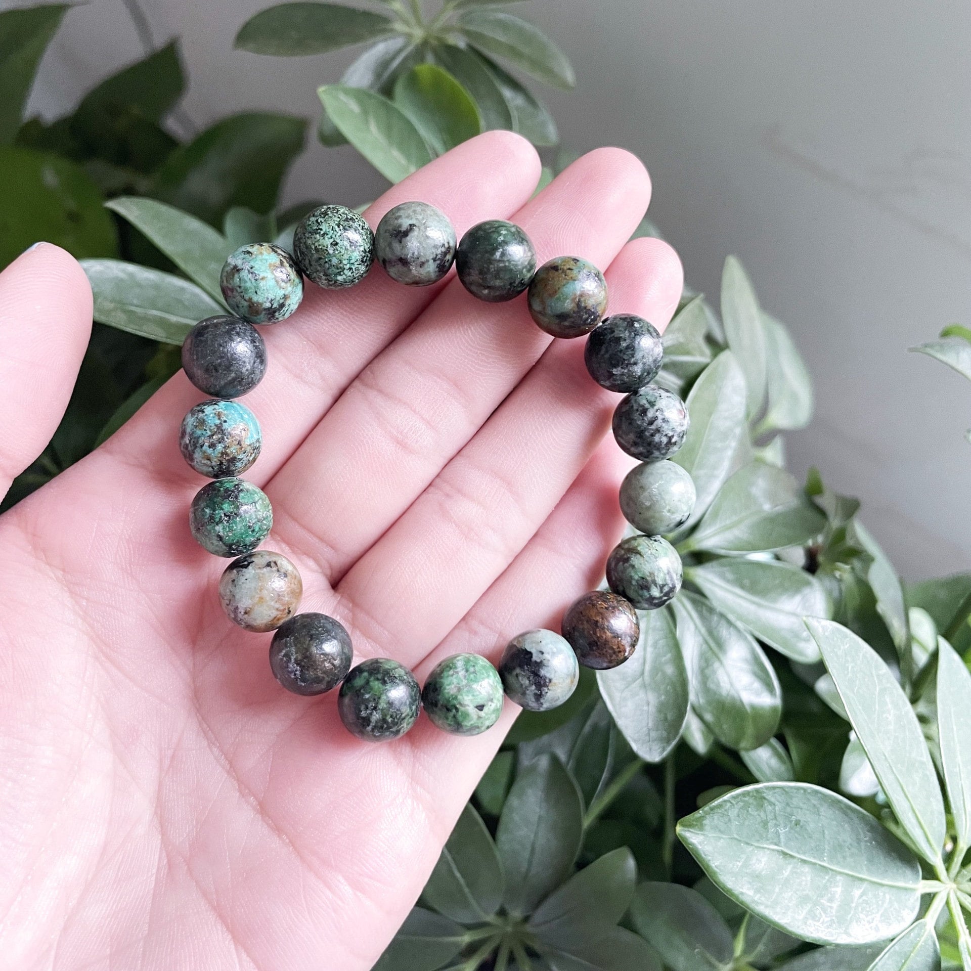 Elastic sphere beaded, natural crystal African Turquoise