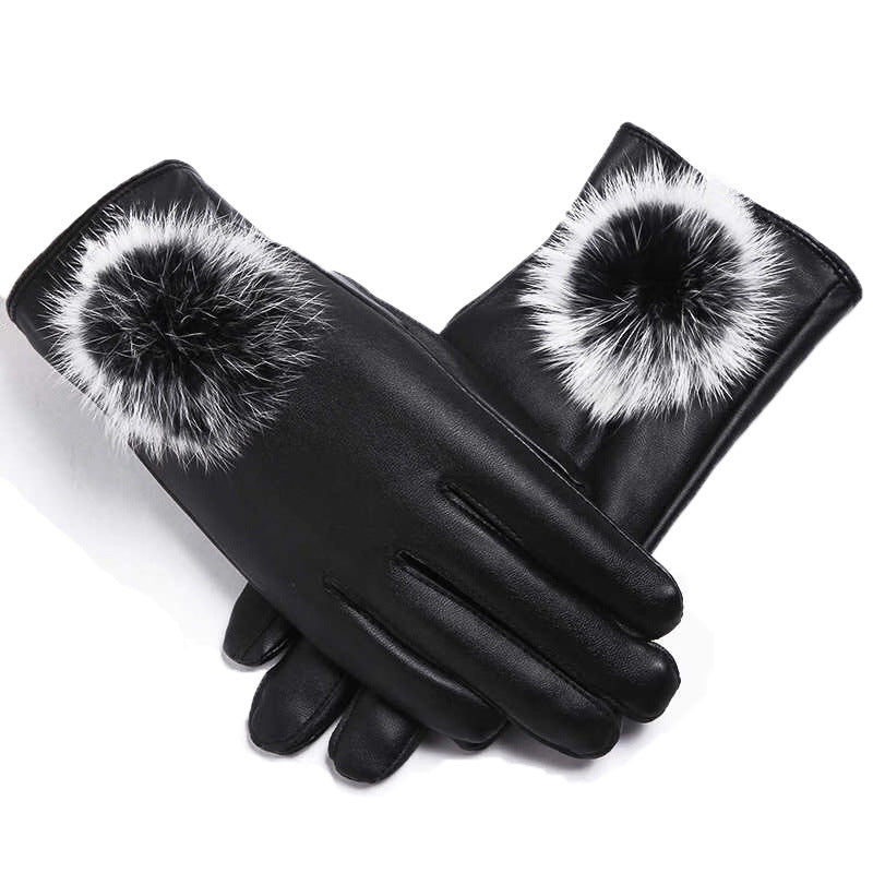 Ladies Faux leather Winter Premium Gloves Touchscreen fleece Lined Fur Bubble