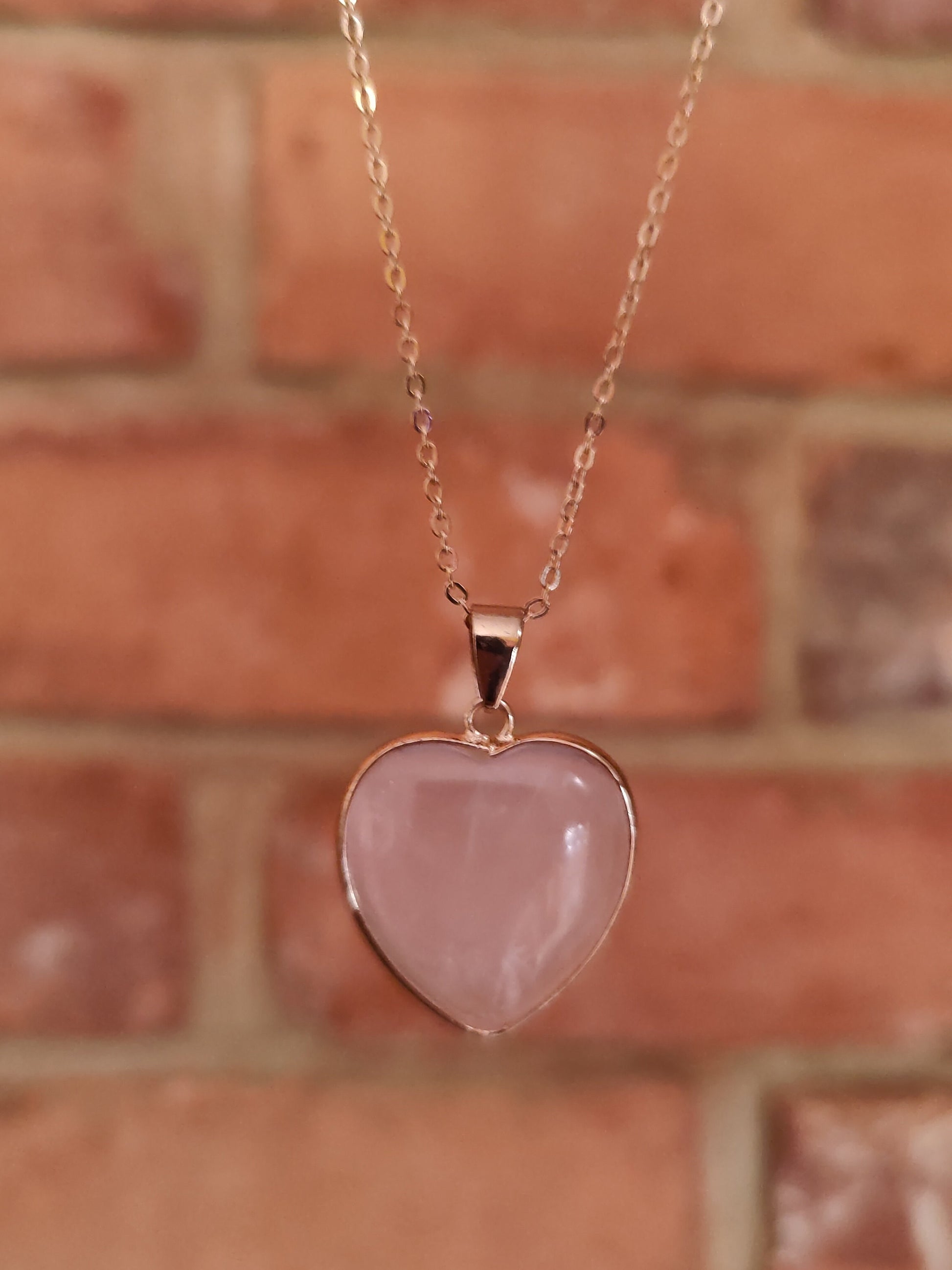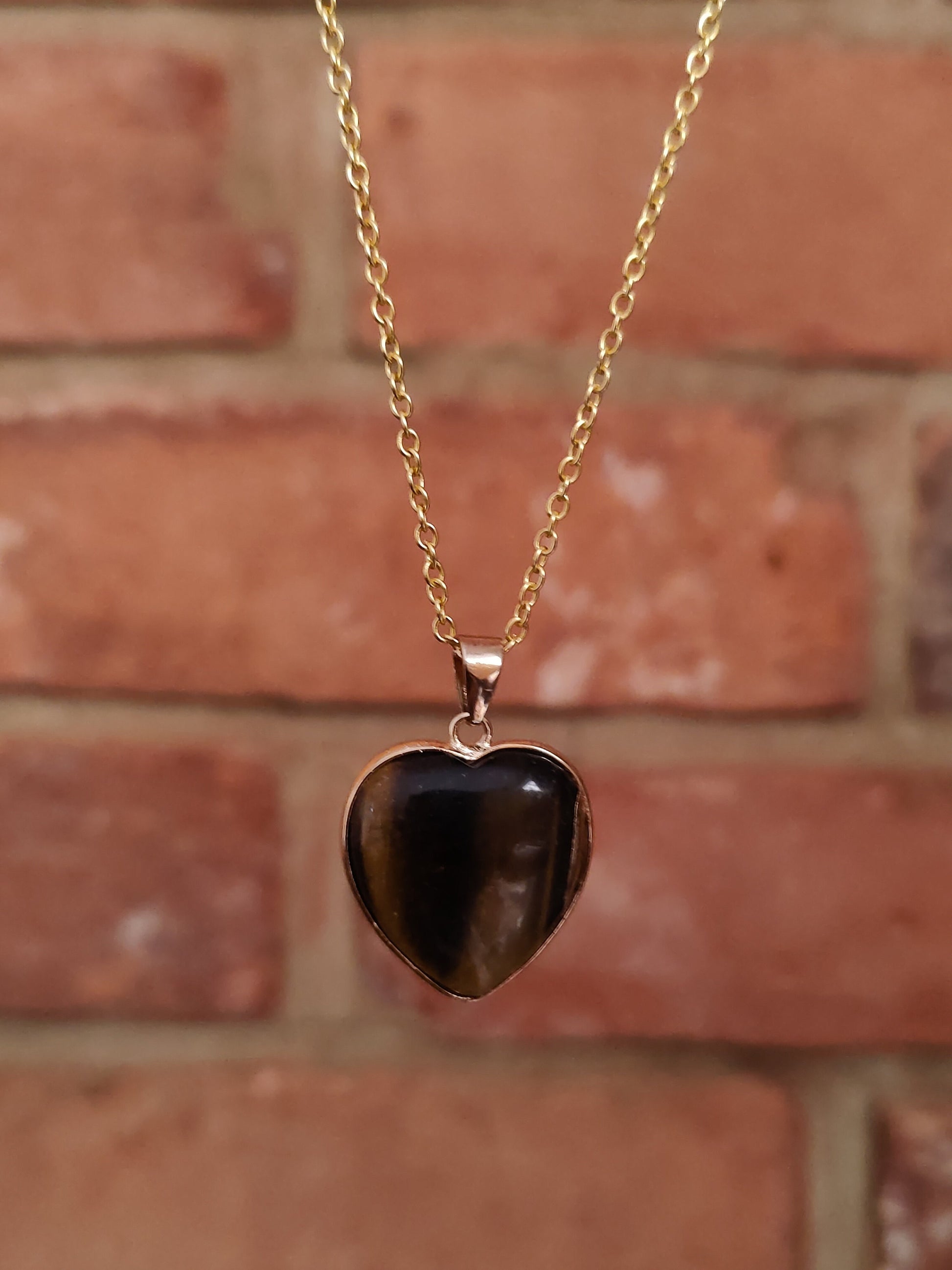 Gold Chain Heart Natural Crystal Stone Necklace Pendant Funky Cute Polished Chakra Stone Mounted on the Base Necklace Pendant