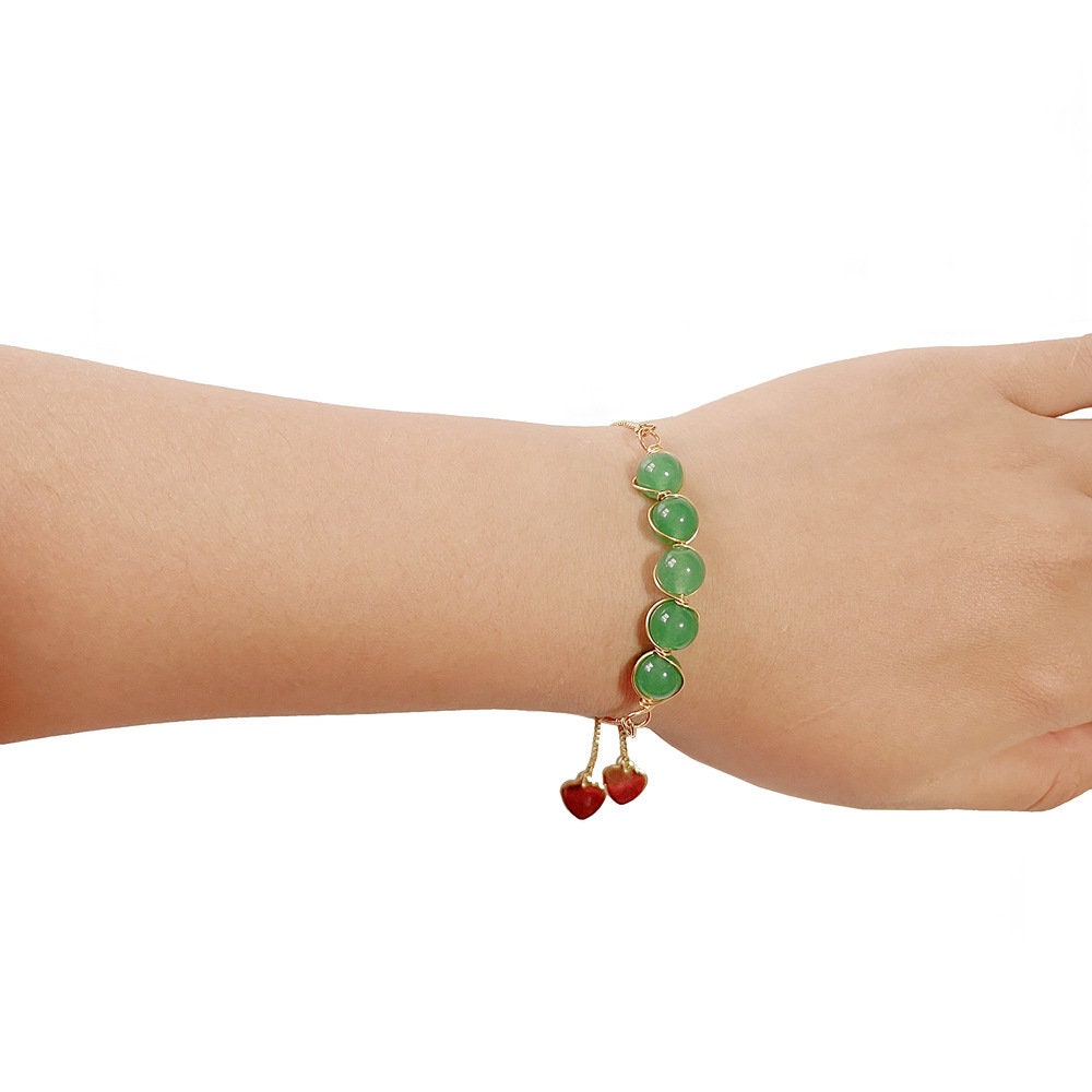Gold Jade Rhodonite Polished Beaded Natural Crystal Stone Bracelet Chakra Stone Drawstring Closure